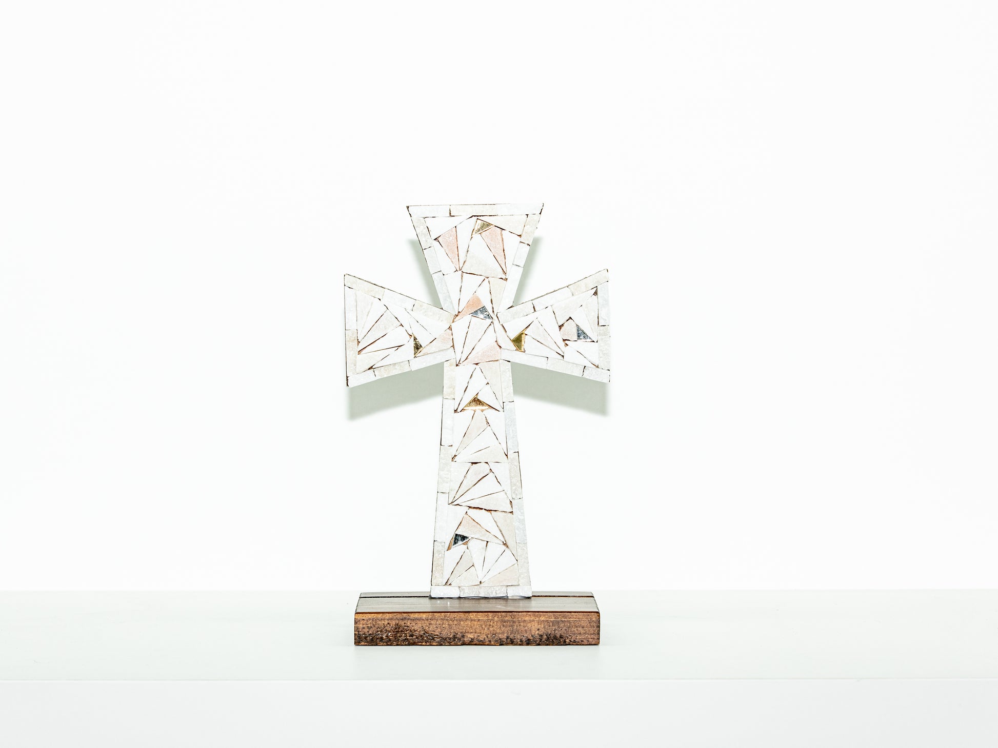 A symbol of serenity and faith, The Grace Cross is handcrafted with precision using white mosaic and vitrail, simple yet meaningful cross that radiates grace and peace.